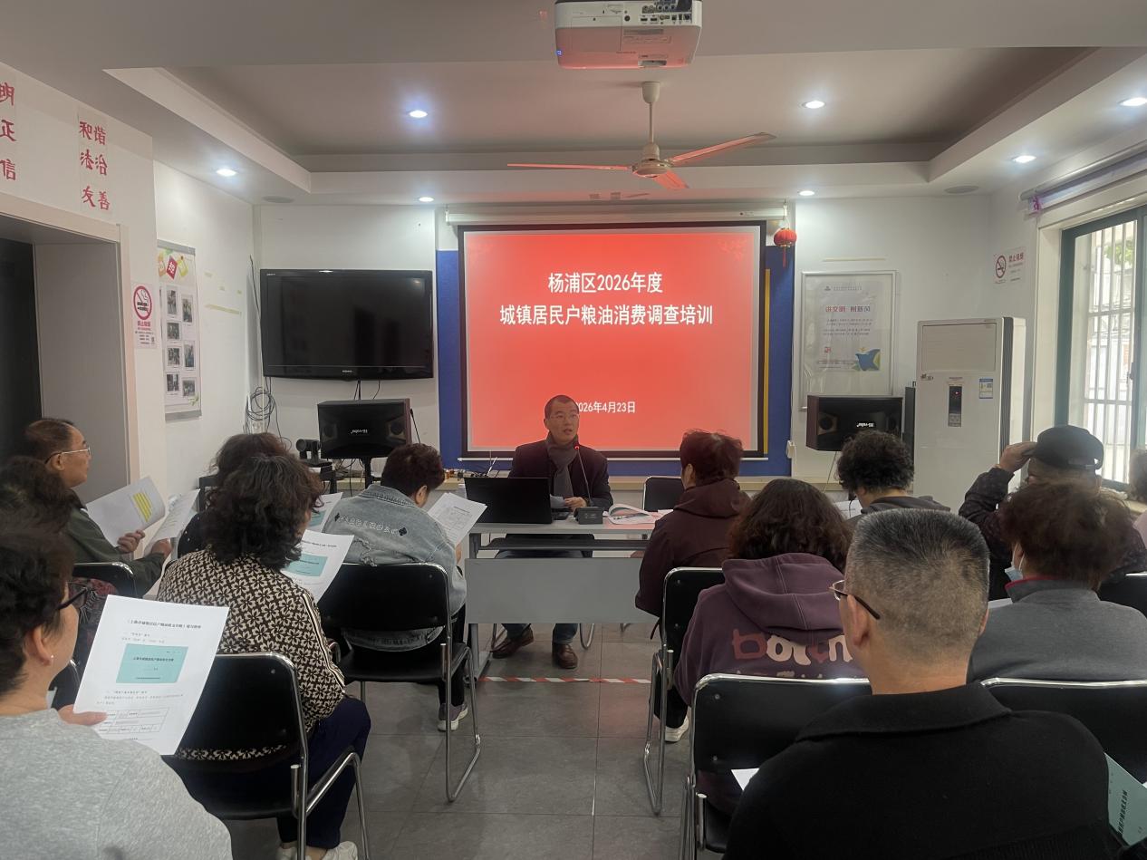 为落实上海市粮食和物资储备局《关于做好2026年度本市城乡居民户粮油消费调查工作的通知》要求,区商务委于4月23日开展杨浦区城镇居民户粮油消费调查培训,调查员和部分调查户参加培训。
