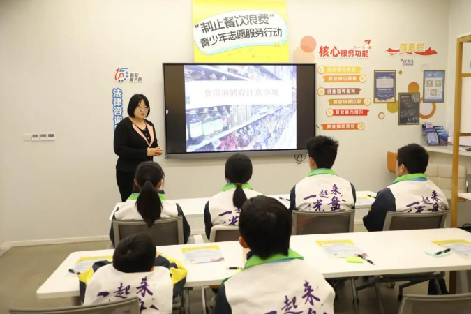 分享减少食物浪费技巧,张贴节约标语海报,向餐厅消费者宣传光盘行动……“制止餐饮浪费”青少年志愿服务行动近日在徐汇万体汇生活盒子社区长者食堂举行。